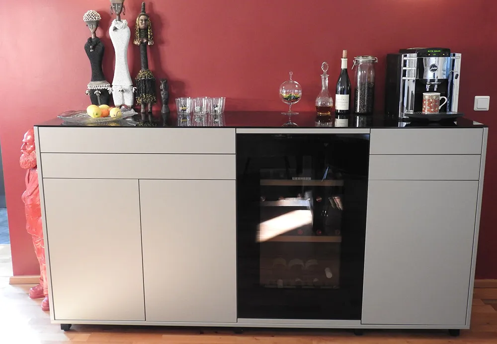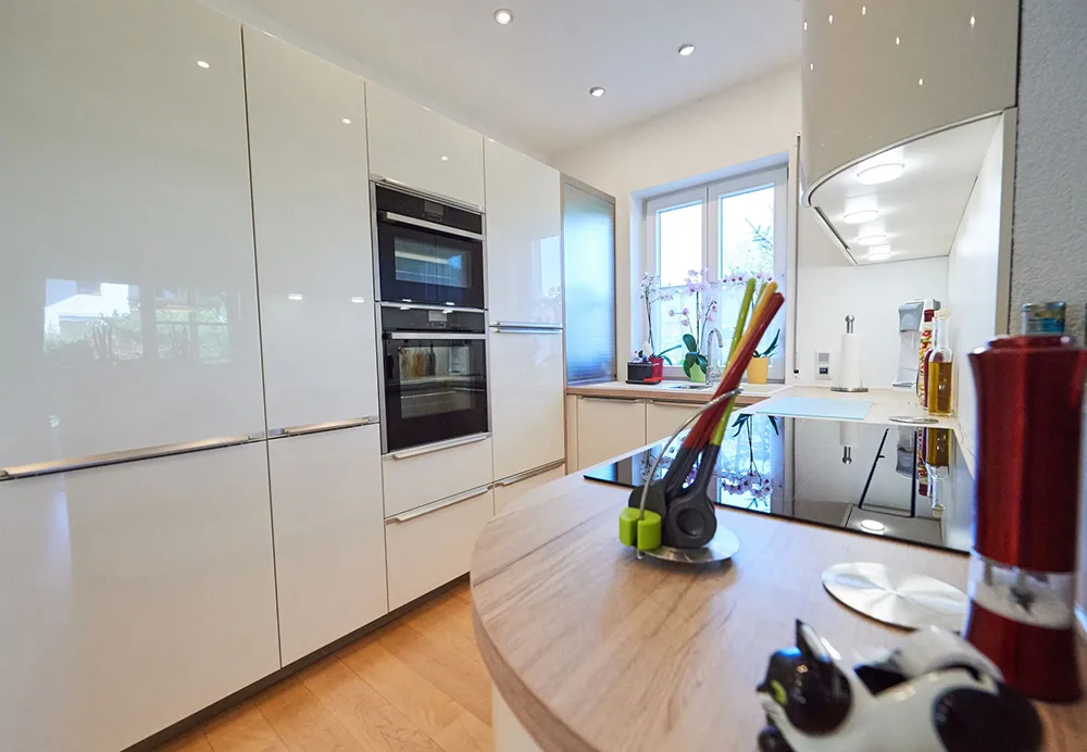 Moderne Küchen sind heute intelligent vernetzt. Wir integrieren auf Wunsch modernste Technologie: von Induktionskochfeldern mit integriertem Dunstabzug über selbstreinigende Backöfen mit zwei Garräumen bis hin zu High-Tech-Kühlschränken mit verschiedenen Temperaturzonen.