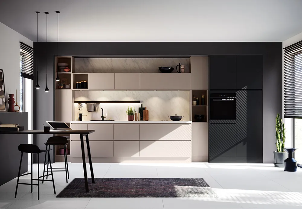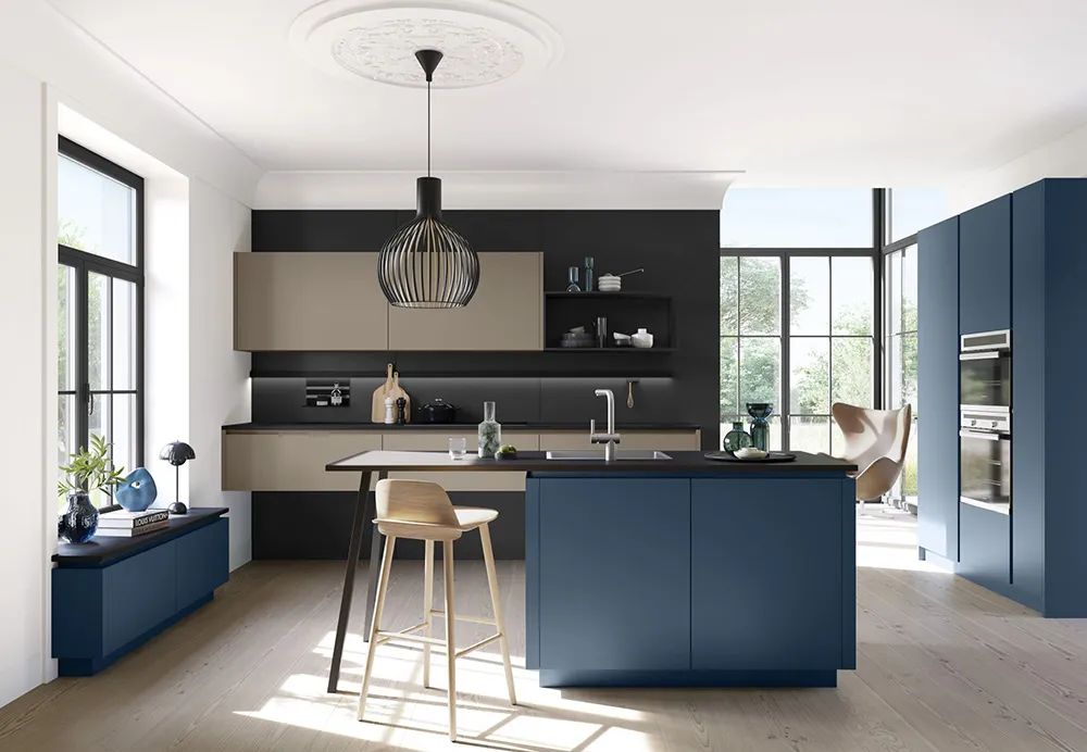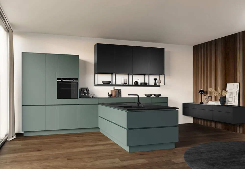 Beliebte Materialien sind Touch free Fronten oder auch Mattlack.