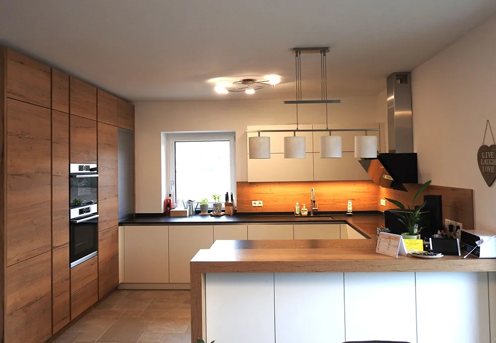 Unsere Küchen vereinen modernes Design mit moderner Technik. Wir legen Wert auf hochwertige Materialien und eine sorgfältige Verarbeitung, sodass Sie viele Jahre Freude an Ihrer Küche haben.